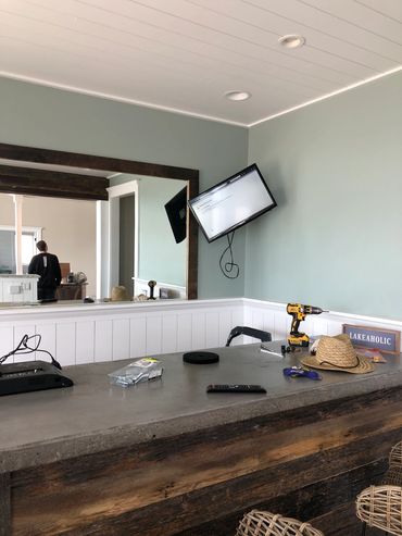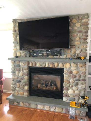 The custom fireplace was rebuilt to incorporate this Samsung 4K beauty. Hidden inside the Leon Tone Case is a Sonos Sound bar paired perfectly with its counterpart the Sonos Sub.